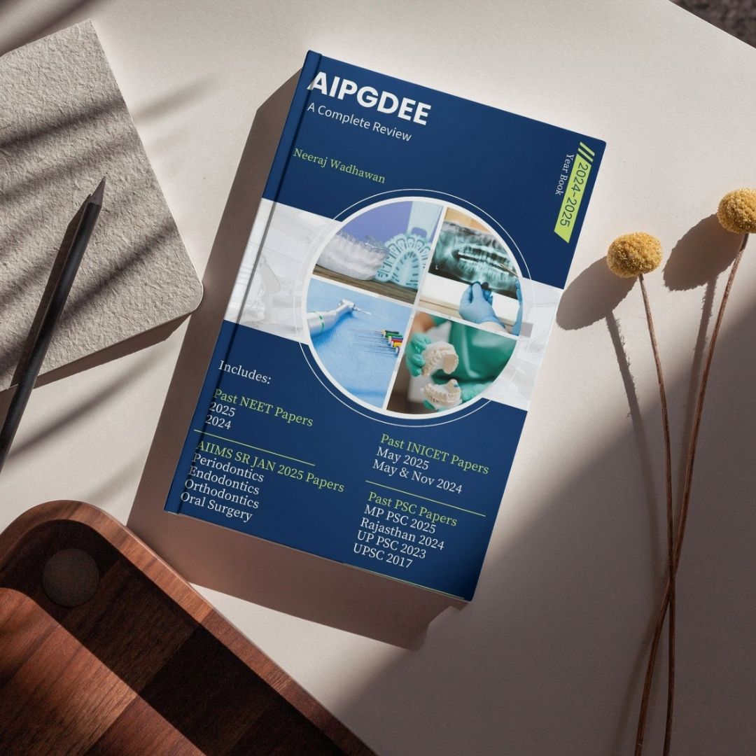 AIPGDEE Year Book 2024–2025, a comprehensive and up-to-date resource designed for postgraduate dental aspirants across India. This year book brings together recent and relevant questions from NEET MDS, INI-CET MDS, AIIMS Delhi SR, and various State PSC examinations, making it a one-stop reference for focused and exam-oriented preparation.